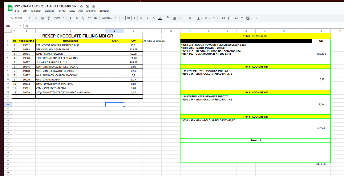 - Created formula calculation sheets and managed material quantity analysis.