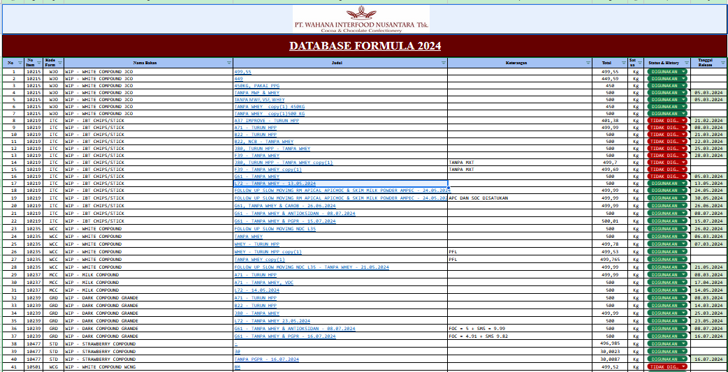 - Created production result forms and Excel-based recipe usage history records.